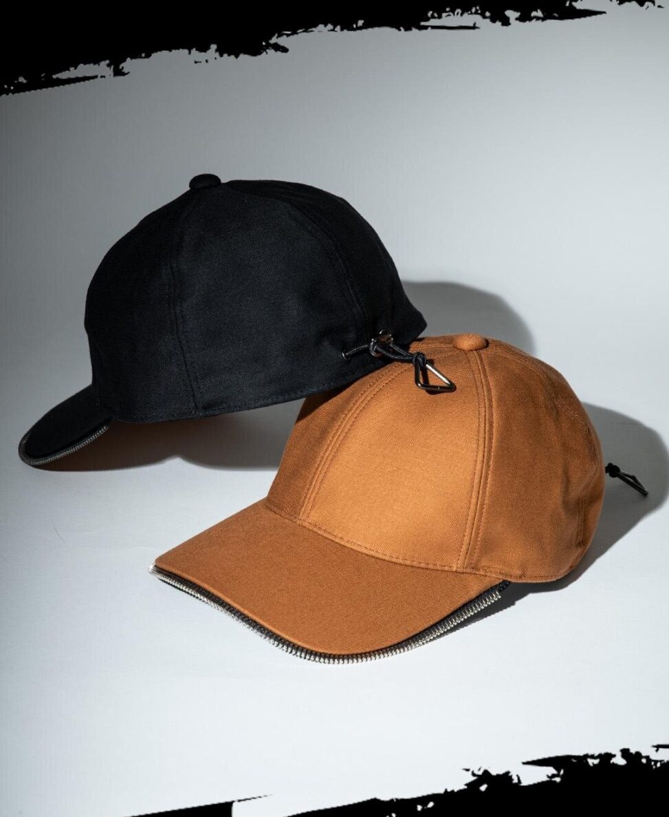 続いて、ポチタをモチーフにした「キャップ01」(12,100円)は、つば周りにチェンソーの刃を想起させるジッパー装飾をあしらい、背面には尻尾をイメージした三角形の調節コードを配置。シンプルながらも細部に遊び心が込められ、ファンなら思わず手に取りたくなる仕上がりだ。