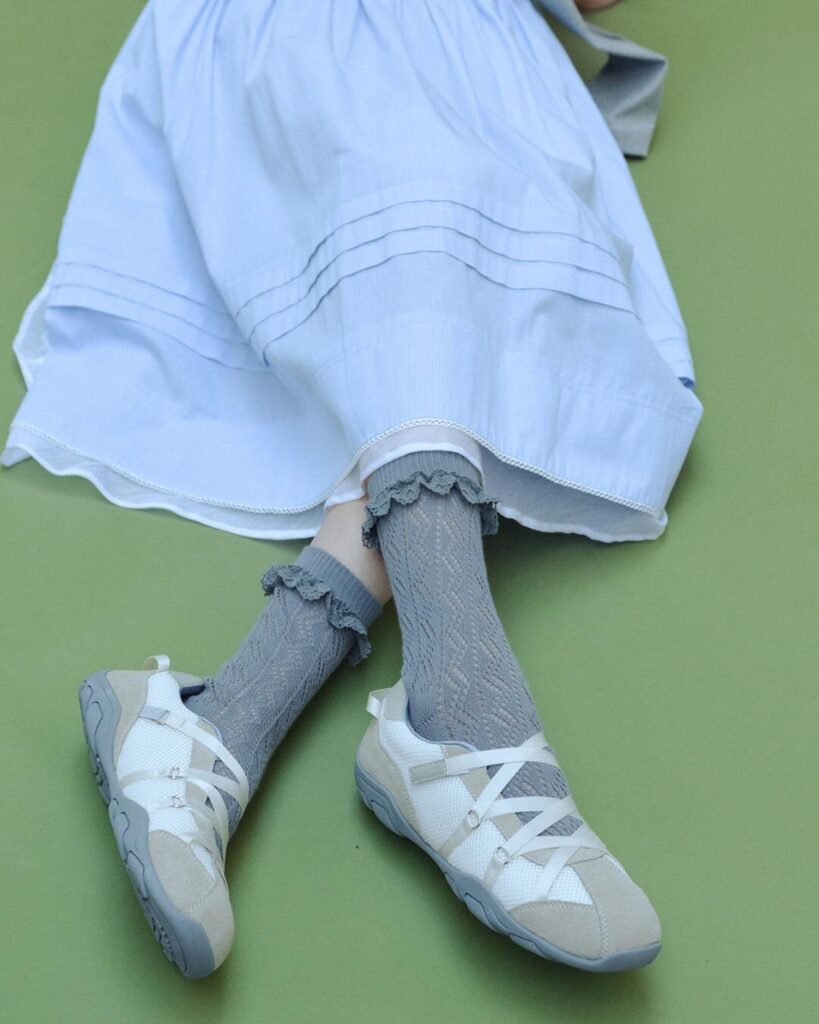 また、15,950円のスニーカーは、スリムなシルエットに甲部分のカッティングを取り入れ、フラットシューズのような軽やかさを実現。編み上げシューレースを組み合わせることで、スポーティーさとエレガントさが同居する独自のデザインに仕上がった。