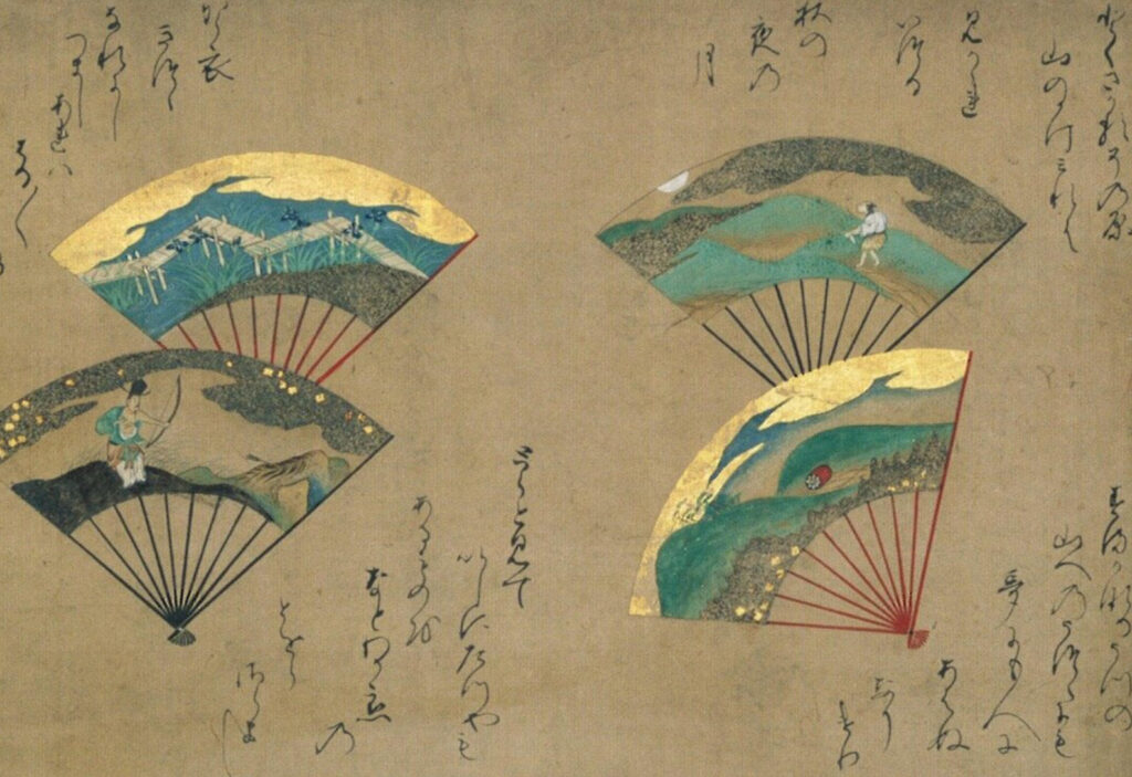 第3章では「物語絵」と「歌絵」の二つの表現形式に注目。物語の場面を描く「物語絵」と、そこで詠まれた和歌を象徴的に表現する「歌絵」が交錯し、独自の美が形成された。代表的な作品として、《八橋蒔絵硯箱》(江戸時代・サントリー美術館蔵)や、扇面に和歌の情景を描いた《扇面歌意画巻》(根津美術館蔵)などが登場し、文学と美術が融合した豊かな文化の広がりを体感できる。
