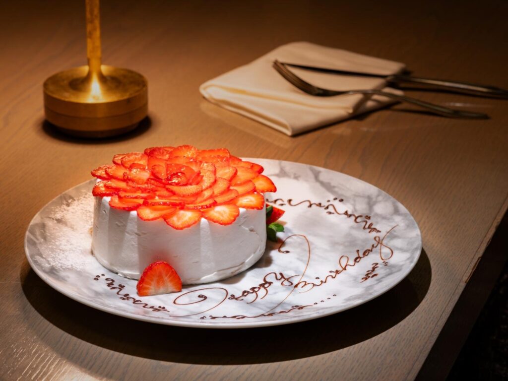 料理のおすすめは、黒毛和牛のグリルを主役にした4品のコース。枝豆の冷製スープや縞アジのマリネ、デザートやカフェがセットになり、6,600円という満足感の高い内容となっている。ジューシーな肉汁が溢れるグリルは特別な夜にふさわしい一皿だ。さらに苺を花びらのように飾ったアニバーサリーケーキ(3,500円)も用意されており、誕生日や記念日のお祝いを華やかに彩ってくれる。