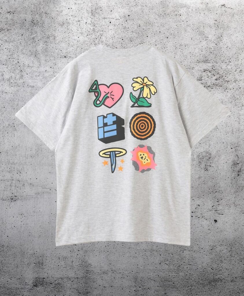 注目は、花束を抱えたレゼを描いたグラフィックTシャツ。ホワイトのボディにピンクの差し色が映え、胸元にはキャッチーな“REZE”ロゴを配している。ポップカルチャー的なアプローチで、カジュアルに着こなせる一枚となっている。ほかにも、デンジの心臓や1輪の花など、映画のキーアイテムをモチーフにしたTシャツも展開。映画を鑑賞したあとに手に取ると、より一層深みを感じられるビジュアルだ。