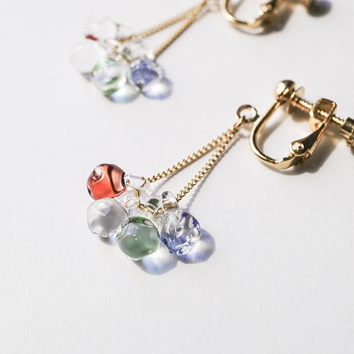 手作業で一つひとつ仕上げられたガラス細工は、同じデザインでも微妙に異なるニュアンスを持つのも魅力。自然の不規則な美しさを感じながら、自分だけの一点を選ぶ楽しさがある。カジュアルな装いにも、特別な日のコーディネートにも合わせやすく、ギフトにも最適だ。