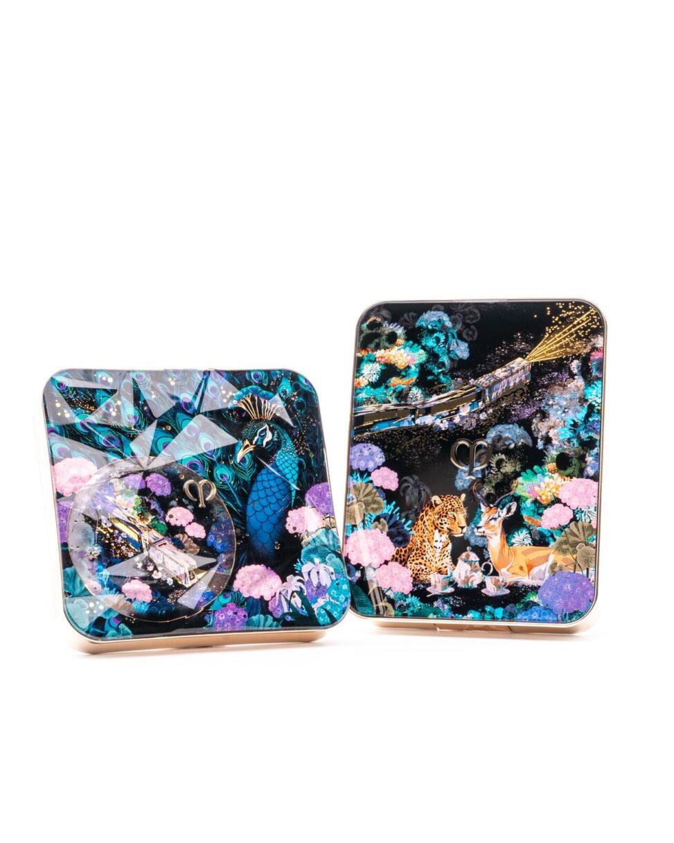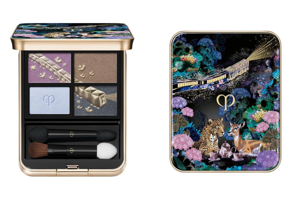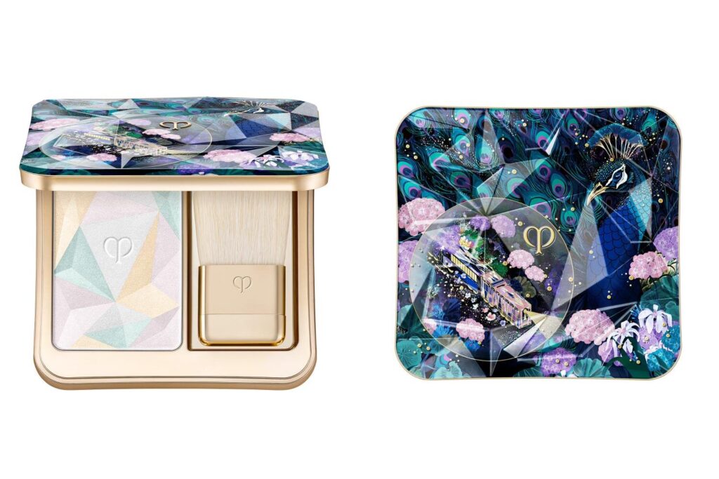 目玉アイテムのひとつは、ハイライティング パウダー「ル・レオスールデクラ」の限定色「111 Pastel Plumes」。孔雀の尾羽をイメージしたクールトーンで、肌に透明感を与えつつ、クリスタルのような繊細な輝きをまとわせてくれる。プレシャスオパールの光沢を思わせる質感は、特別な日のメイクアップをさらに格上げしてくれそう。パッケージも孔雀や水晶玉、夢の列車を描いたデザインで、手に取るだけで心が弾む仕上がりだ。