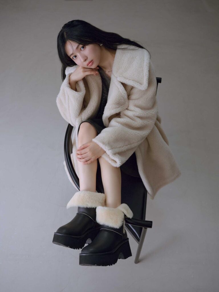 また、厚みのあるプラットフォームソールを採用し、トレンド感のあるルックスを演出。ボリューム感がありながらも軽量で、長時間の歩行でも疲れにくい仕様となっている。街中でのショッピングやカフェ巡りはもちろん、旅行先での散策など幅広いシーンで活躍しそうだ。シープスキンならではの自然な通気性と保温性により、寒い季節も快適な履き心地をキープしてくれる。