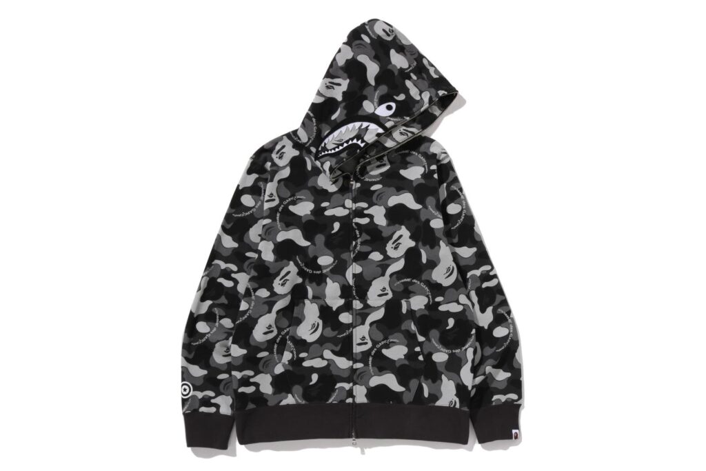 また、ア ベイシング エイプを代表する「シャーク フルジップ フーディー」もコラボ仕様で登場。アーカイブモデル「セカンド シャーク フルジップ フーディー」をベースに、フード背面には“CdG”ロゴを再構築したデザインを施した。ブランドの遊び心を反映した一着となっている。