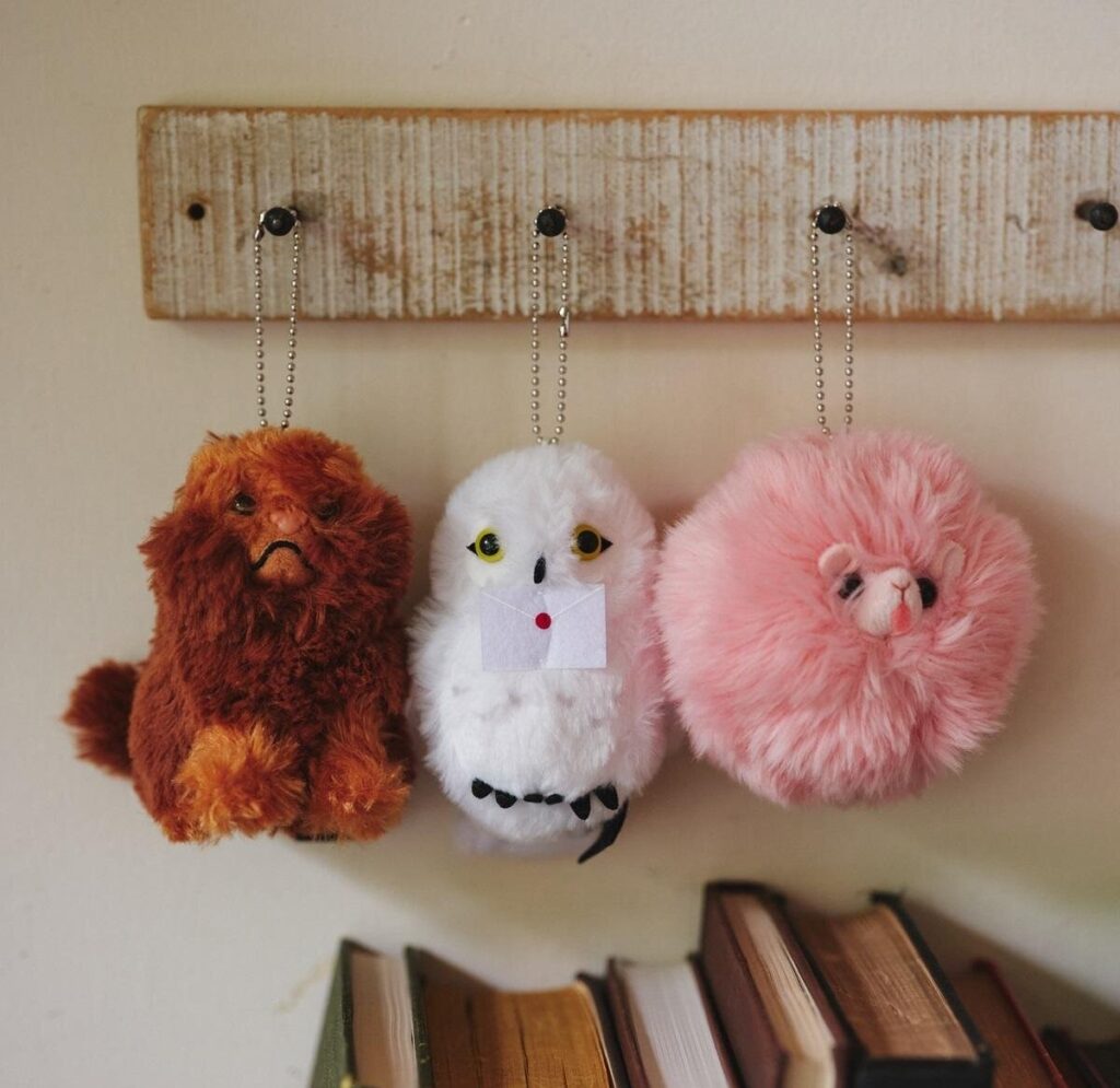マグカップには、猫に変身するマクゴナガル先生や、クルックシャンクス、そしてハリーの相棒である白フクロウのヘドウィグなどが描かれ、ファン心をくすぐる仕上がり。ぬいぐるみやチャーム類も充実しており、ふわふわのヘドウィグやクルックシャンクスのぬいぐるみキーチャーム、さらにピグミーパフのポーチやイヤーマフラーも揃う。