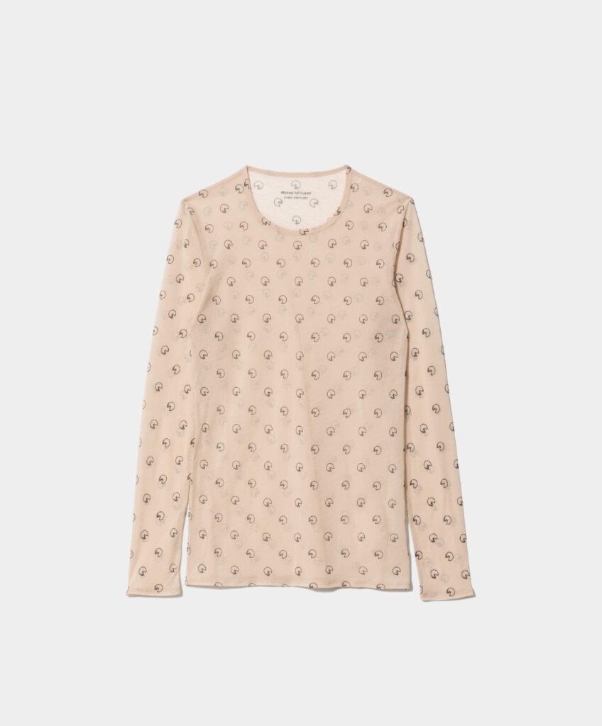 さらに、遊び心あふれるシアートップスもラインナップ。こちらは「PAC-MAN」のフォントから着想を得た“C”の文字を散りばめたパターンを採用。ドット模様のように見えるため日常使いしやすく、コットン100%のシアージャージ素材による柔らかな肌触りと軽やかな透け感が魅力だ。
