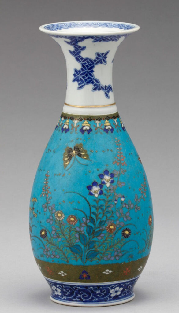本展では、そうした近代七宝の粋を集めた約250点の作品を展示する。たとえば、緻密な花と鳥を描いた《七宝山桜雀図花瓶》、富士山をモチーフにした《無線七宝富士図花瓶》、磁器と七宝を融合させた《染付磁胎七宝秋草蝶図花瓶》、さらには金魚を鮮やかに映し出した《銀胎無線七宝藤金魚図花瓶》など、いずれも驚異的な技巧が施された名品ばかりだ。