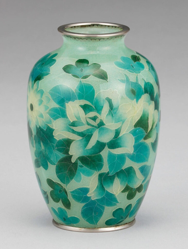 江戸時代後期には、尾張藩士の梶常吉(かじ つねきち)が「尾張七宝」を創出し、近代七宝の礎を築いた。明治以降は重要な輸出工芸として世界に広まり、日本の七宝技術は大きな飛躍を遂げることになる。従来の七宝は「象嵌」と呼ばれる技法で、くぼみに釉薬を流し込むのが一般的であった。しかし尾張七宝では、銀や金の細線で文様を縁取り、その中に釉薬を施す「有線七宝」や、線を用いずグラデーションで表現する「無線七宝」など、革新的な技法が発展した。これらは日本独自の美意識と高度な職人技によって磨かれ、世界を魅了していった。