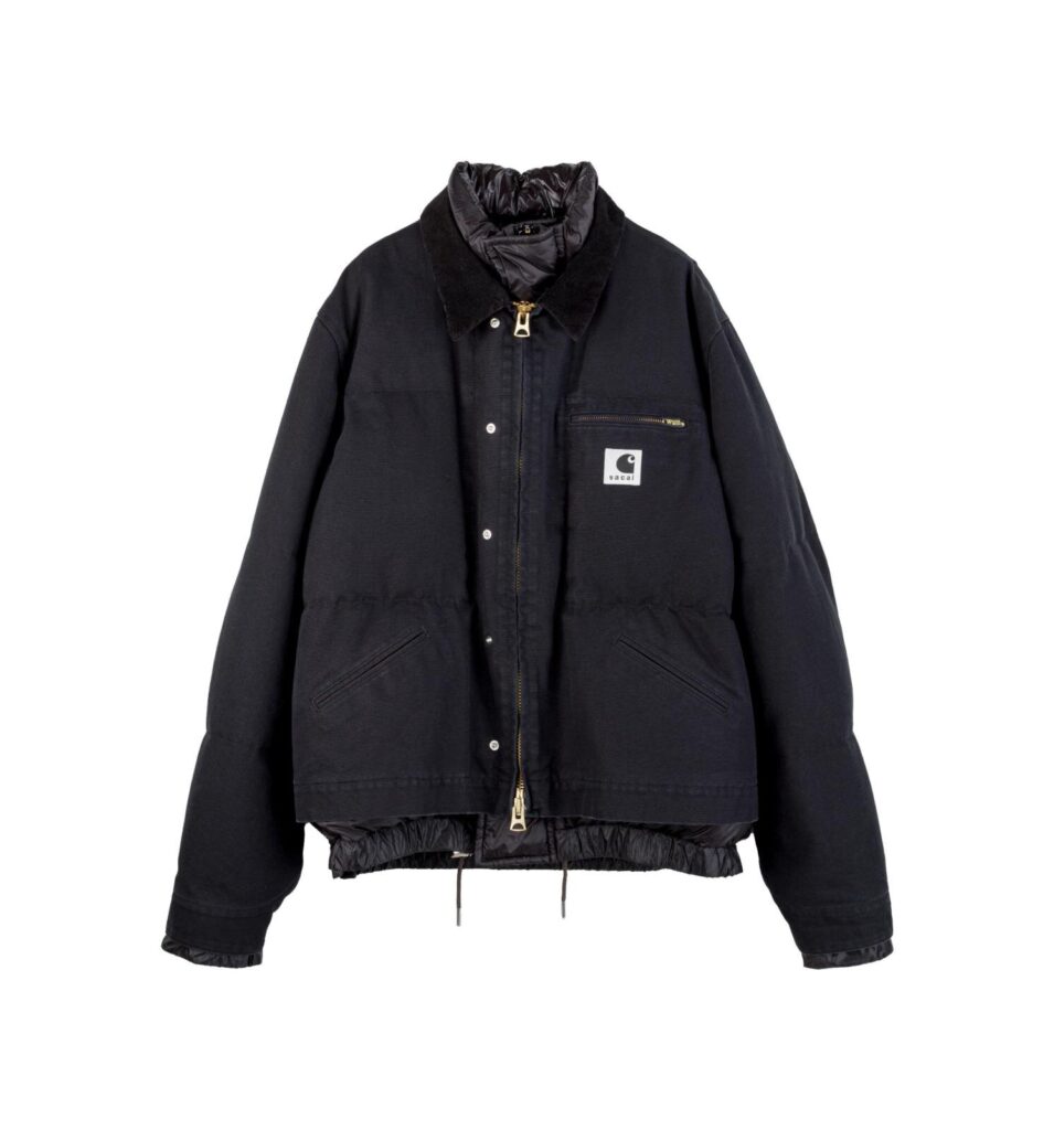 注目は、カーハート WIPの名作「デトロイトジャケット」をベースに再構築したアウター群だ。たとえば、sacaiのシグネチャーであるパファージャケットをドッキングしたモデルは、クラシックなダウンステッチを施しながらも、都会的で構築的なデザインに仕上げられている。また、「デトロイトジャケット」とバイカージャケットを融合させたレザージャケットは、ソフトレザーを採用し、ワークとラグジュアリーが交差する一着に。さらに「デトロイトジャケット」と「アークティックジャケット」をかけ合わせたユニセックス仕様のアウターなど、多彩な再解釈が試みられている。