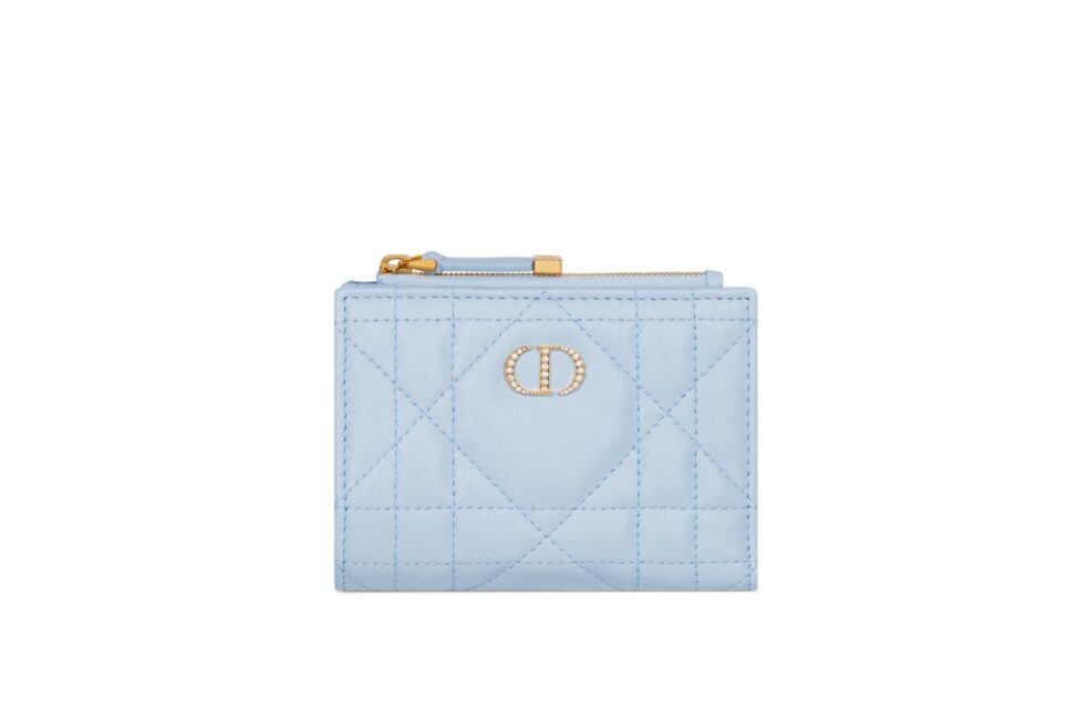「ディオール カロ」ウォレットは、メゾンのアイコニックな格子模様「マクロカナージュ」をラムスキンに施した上質な仕上がり。限定色スカイブルーをはじめ、柔らかな印象を与えるパウダーピンクやパウダーベージュ、シックなブラックの全4色が揃う。フロントには、ホワイトクリスタルをあしらったゴールドトーンのCDシグネチャーが輝き、ラグジュアリーな存在感を放つ。デザインは紙幣やカードを整理しやすい2種類のコンパクトサイズに加え、カード収納に特化したスリムなカードホルダーも展開される。