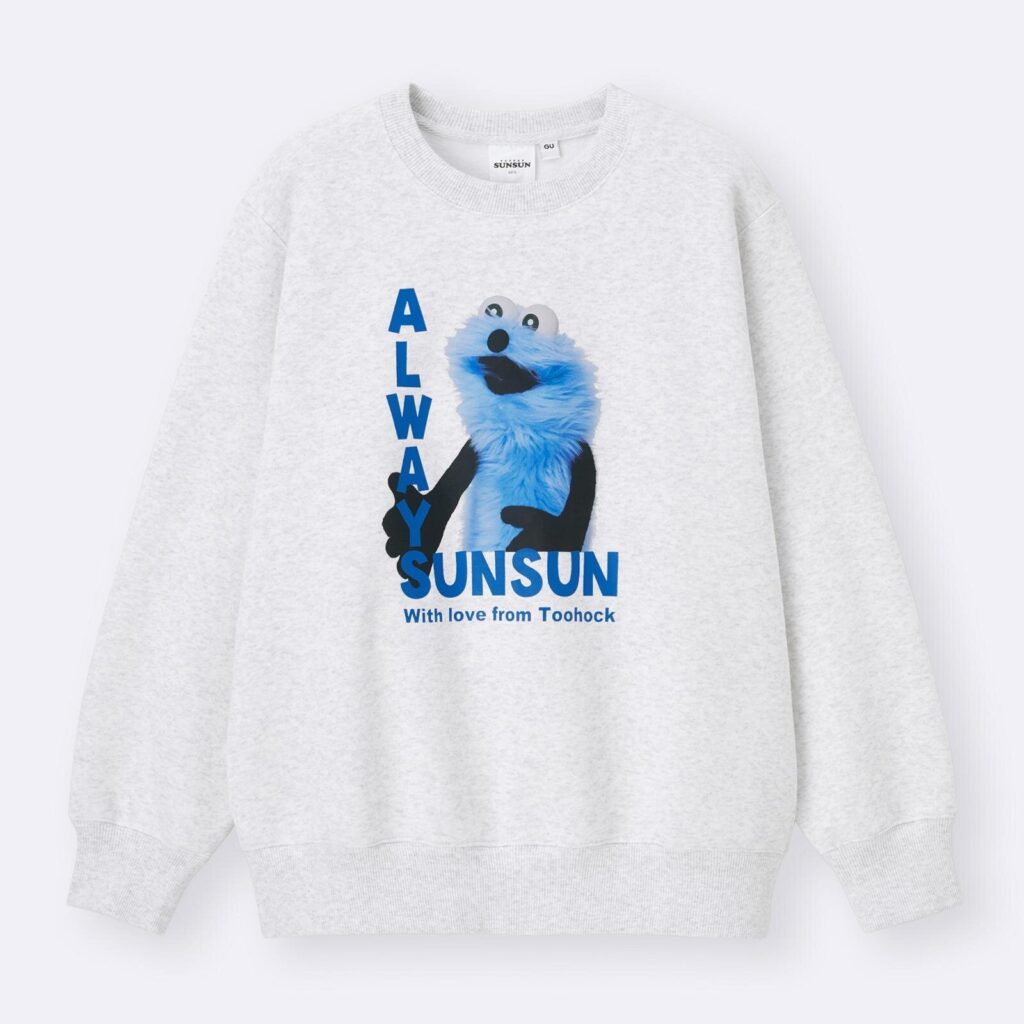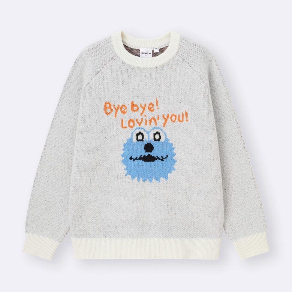 ウィメンズでは、裏起毛スウェットにスンスンをプリントしたカジュアルなトップスや、キャラクターの顔を大胆に配置したニットプルオーバーが登場。特に注目なのがオーバーサイズカーディガンで、毛足の長い素材を用いたふわふわの質感はまるでスンスンを思わせる仕上がり。ブラックとアイコニックなブルーの2色展開で、ポケットからは小さな“スンスン”が顔を覗かせる遊び心あるデザインだ。