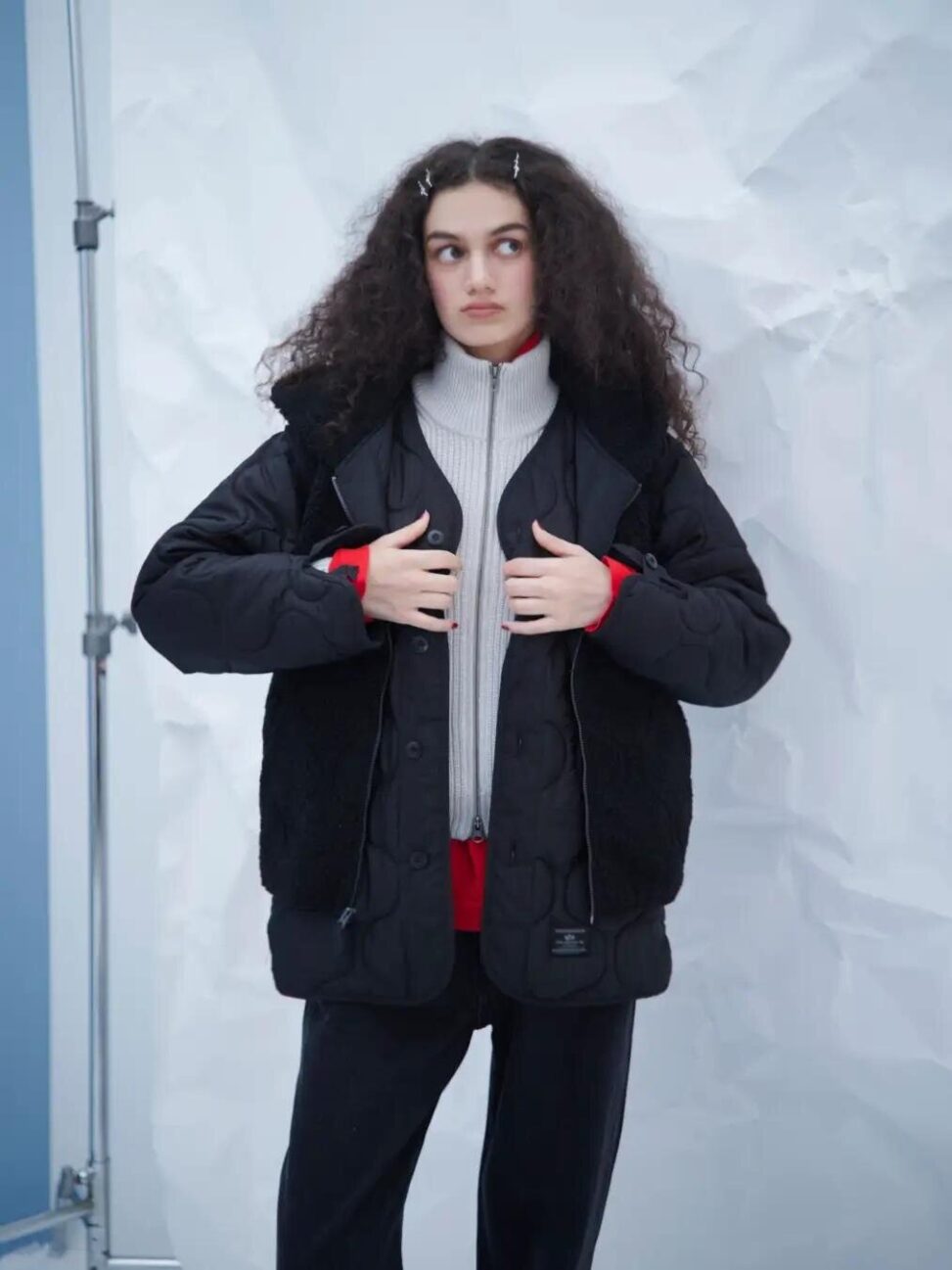今回の目玉は、アルファ インダストリーズ(ALPHA INDUSTRIES)とタッグを組んだキルティングジャケット。ブランドの定番アイテム「ALSライナー」をベースに、ボアフーディ付きベストを組み合わせた4WAY仕様へと進化させた。ライナーの中にベストを仕込んだり、外側に重ねて着用したり、それぞれ単体で使ったりと、多様なスタイリングが可能。秋口から真冬まで、気温やコーディネートに応じて自在に着こなせる。