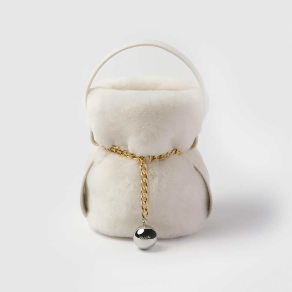 ■限定カラーのウィメンズバッグ ウィメンズからは「プラダ プチサック ノワール」が、ホワイトとピンクの2色で限定登場。ふんわりとしたバケット型のフォルムに、球体ペンダント付きチェーンがアクセントを添えるデザインで、女性らしい華やぎと遊び心を表現している。