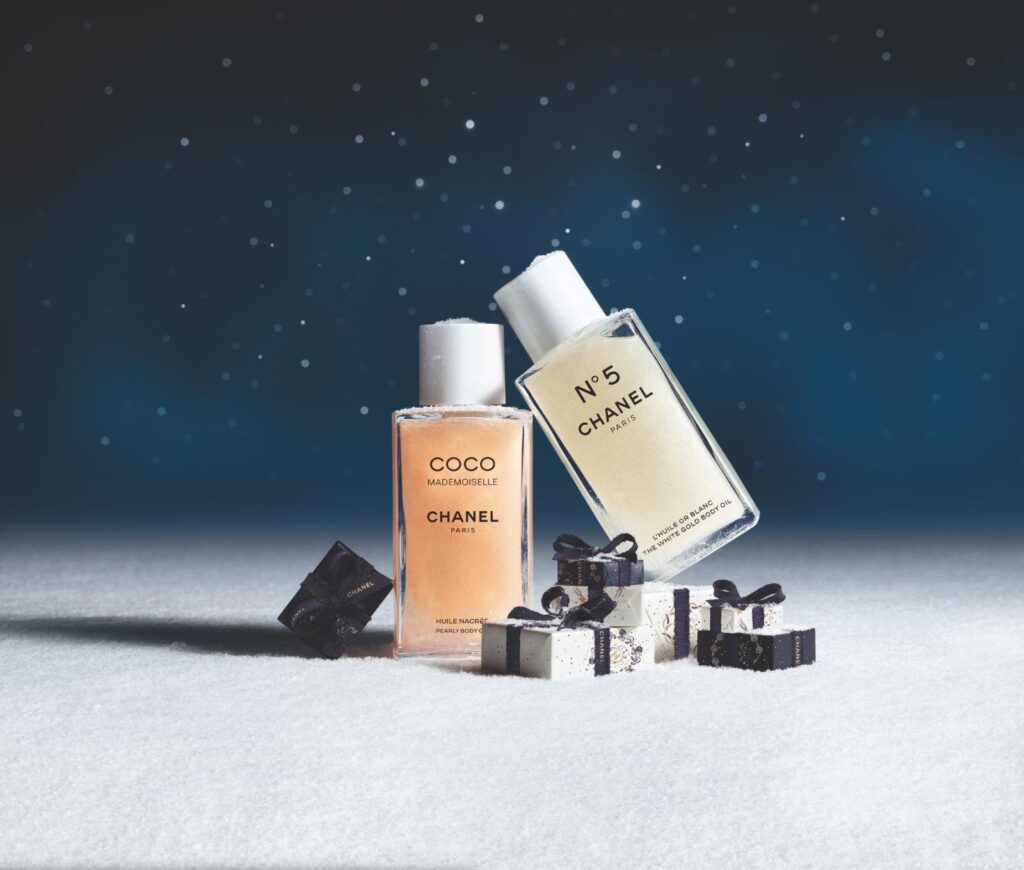 ■限定ボディオイル 「シャネル N°5」からは、ホワイトゴールドに輝く特別なボディオイルが登場。ふんわりと香りをまといながら、肌に光沢を与え、ドレスアップスタイルをさらに華やかに仕上げる。250mLの大容量で、デコルテや脚などパーティシーンに合わせて使えるのが魅力だ。また、「ココ マドモアゼル」からも限定ボディオイルが登場。パールパウダーを配合し、スノードームのように輝きが舞う美しいビジュアルを楽しめる。センシュアルな香りとともに、指先まで艶やかな印象を演出する。