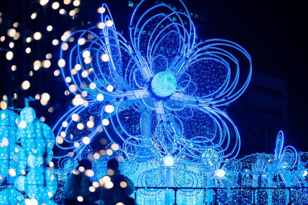 メインとなる大通会場では、クリスマスの12月25日(木)までの期間、大通西1丁目から5丁目までの各エリアに異なるイルミネーションを展開。例年、クリスマスツリーや光のトンネル、花をかたどったオブジェなどが登場し、訪れる人々を魅了してきた。特に札幌市のシンボルであるライラックをモチーフにしたオブジェや雪の結晶をかたどった光の演出は、写真映えスポットとしても人気を集める。