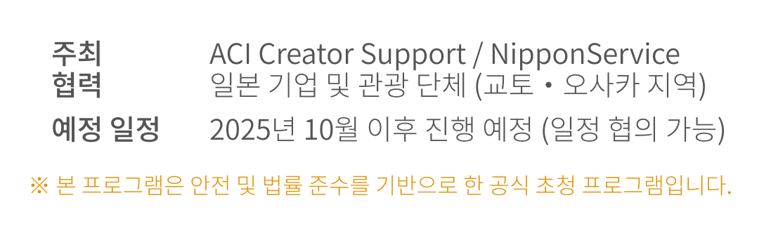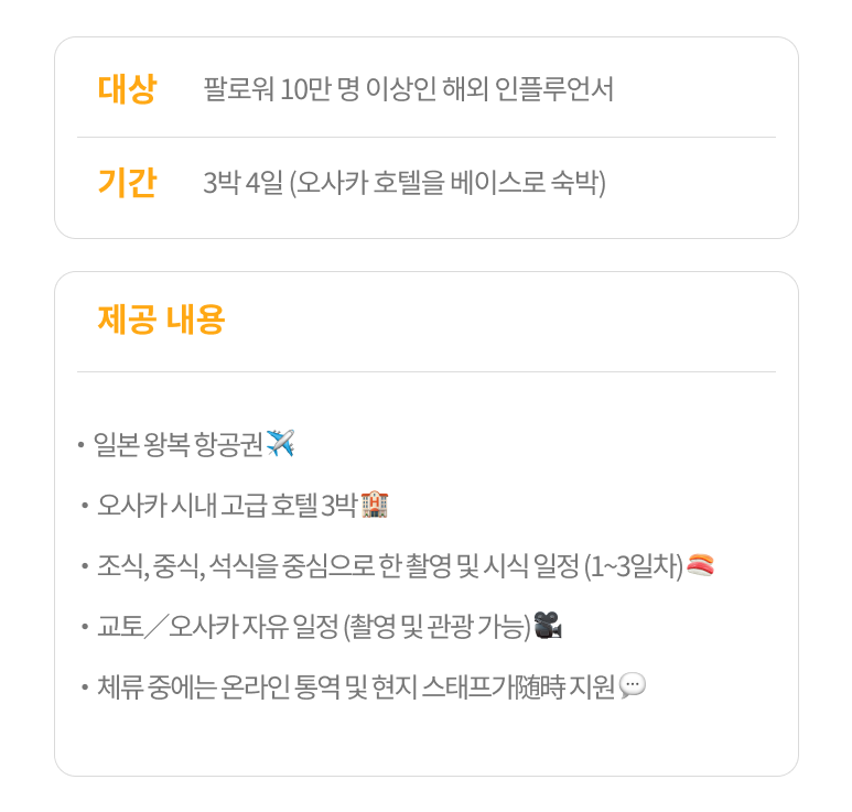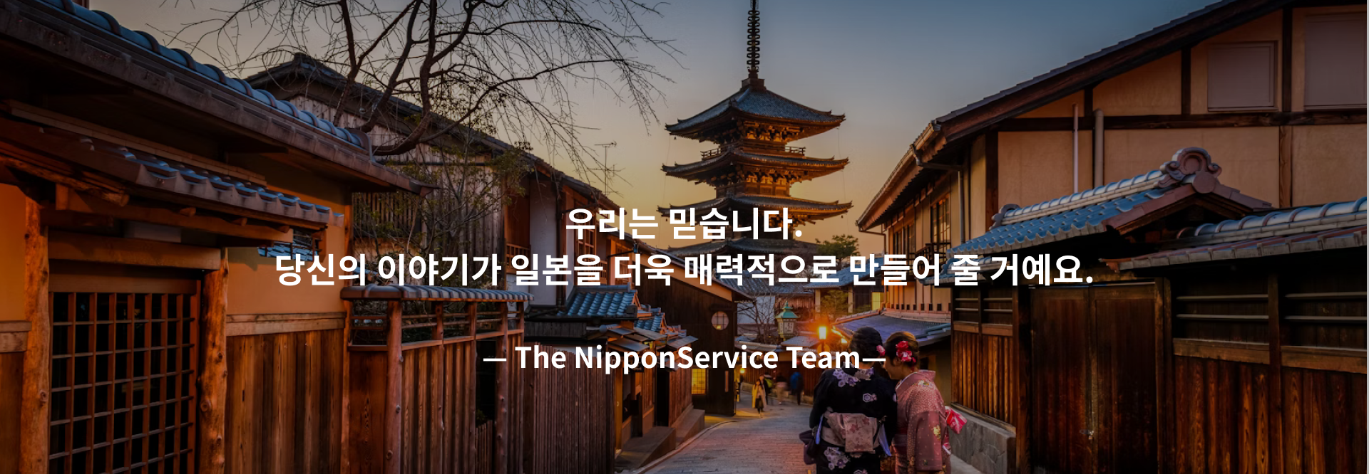 Case100-ko Level 3:100,000 Followers ~ Premium Ambassadors 日本語 | English | 繁体字 | 簡体字 | 한국어 ✈️ 비행기, 호텔, 미식 체험 — 모두 무료! 🍣✨당신의 SNS로 이 특별한 일본 여행을 전 세계에 알려주세요! 🌸 당신의 감성으로일본의 ‘맛과 문화’를 전 세계에 전해주세요. 日本語 | English | 繁体字 | 簡体字 | 한국어 Case “팔로워 수만큼, 기회가 있습니다.”당신의 영향력에 맞는 새로운ステ이지로 나아가세요. 🌸NipponService는 모든 크리에이터가자신의 재능을 펼칠 수 있는 기회를 준비하고 있습니다. ✨ 💎 Level 3:100,000 Followers ~ Premium Ambassadors🌸 Level 2:10,000 Followers ~ Growth Influencers🌿 Level 1:5000 Followers ~ Emerging Creators